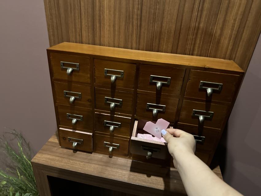 전시관 관람이 끝나면 서소문 혜민서의 처방을 받을 수 있습니다. 유교 경전 논어, 맹자, 중용, 대학 속 문구를 통해 현재 삶 속에서 반복되는 고민과 문제를 생각해 보고 선조들의 지혜로 작은 위로를 받는 것인데요. 전시장에 비치된 여러 개의 상자 중 하나를 골라 처방전을 뽑으시면 됩니다. 하트모양 처방지에 위로가 되는 문구가 적혀있습니다.