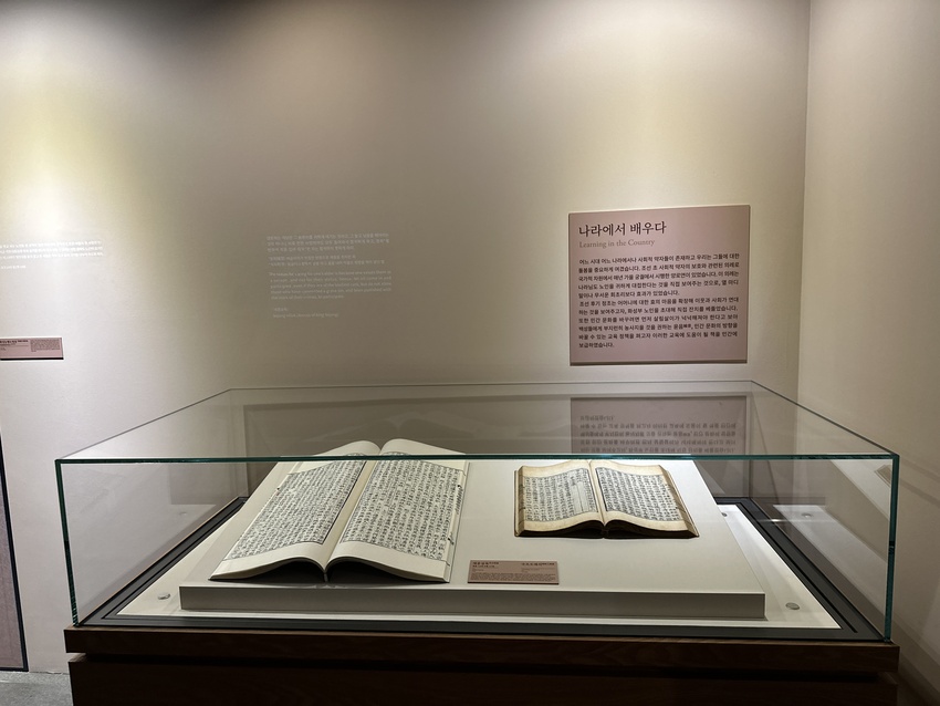 조선시대에는 다른 사람을 배려하고 나누는 마음을 가진 어진 사람으로 자라기 위해서는 어른시절부터 가르침이 중요하게 여겨졌습니다. 일상 생활에서의 예절, 어려운 처지에 놓이더라도 절대 해서는 안 되는 행동등 마음가짐을 구체적으로 나열한 글을 통해 자녀들을 올바르게 자라도록 교육했습니다. 전시관에는 조선시대의 예절서 사소절과 규합총서 원본이 전시되어 있었습니다. 조선 후기에는 여성들을 가르치기 위한 책도 있었는데요. 실생활에 유용한 실용지식과 음식을 만드는 방법 등이 담긴 책을 여성이 직접 기술하여 교육서로 사용하였다고 전해집니다.