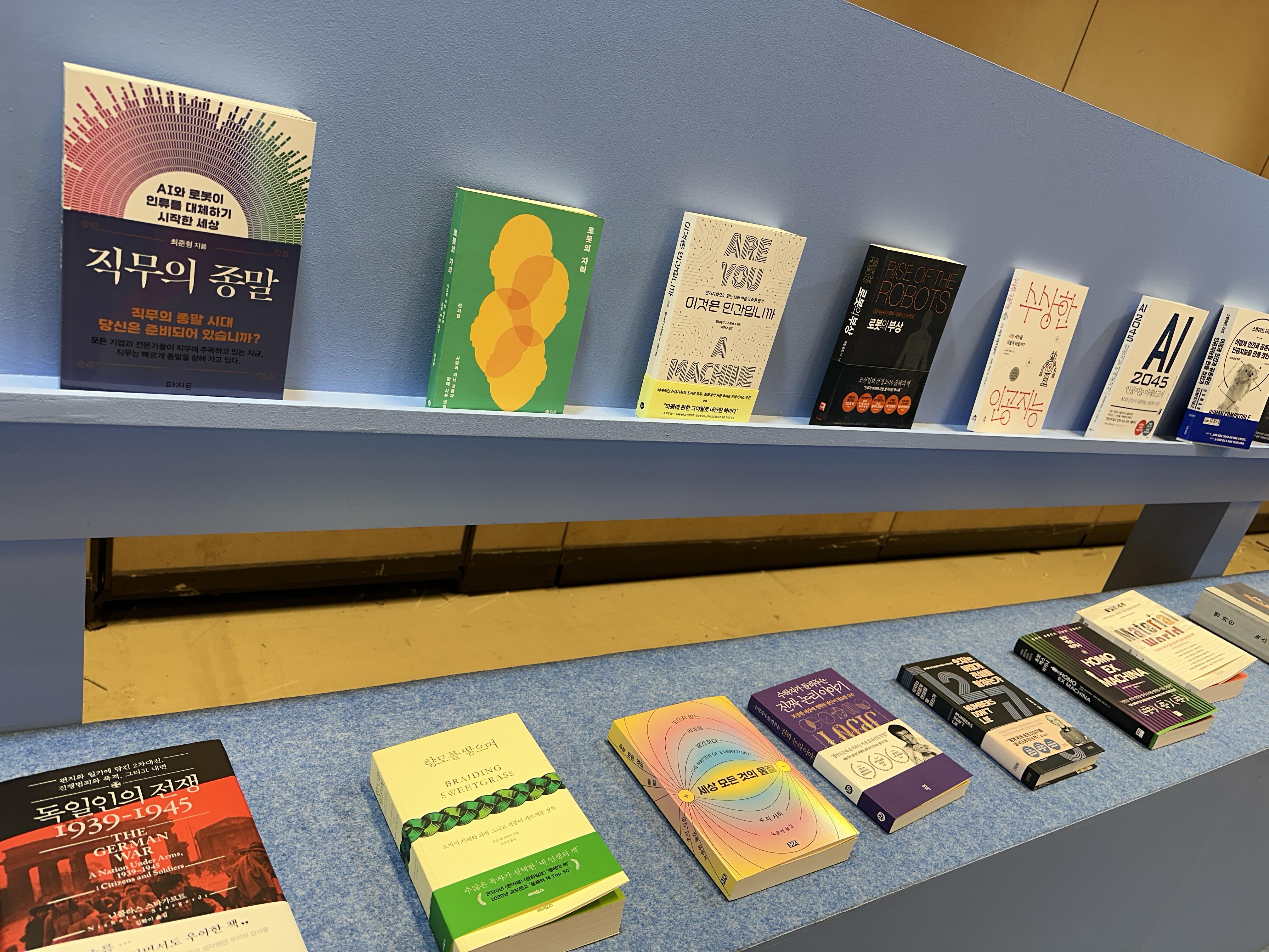전시장을 돌아다니면 세 곳의 강연장에서 진행되는 여러 강연들을 볼 수 있었습니다. 송길영, 박준 시인이 진행하는 '문학과 AI를 횡단하다'라는 강연이 흥미로워서 한참 서서 들었습니다. 출판분야는 유통 구조상 돈이 안되기 때문에 AI가 침투하지 않고 오래 갈 것 같다는 분석이 재미있었습니다. AI도 돈 되는 일만 한다는 건데요. 씁쓸하기도 하지만 생각해 볼 문제인 것은 확실합니다.
